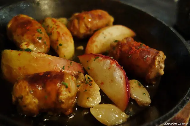 香腸帶肉汁還有點微辣,口味雖重但與果香甜味頗合拍,一旁的蘋果也有入味,這道我蠻喜歡的,餘下的醬汁還用麵包抹乾淨來吃,意猶未盡。