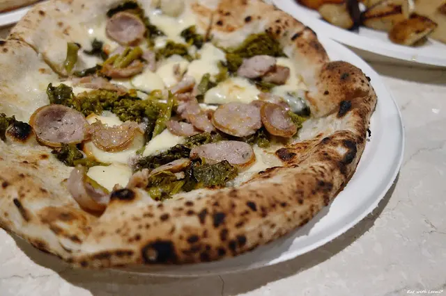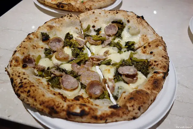 店家另一款得獎之作是牧島冠軍披薩,醃漬過的蕪菁葉是這款的亮點,那種鹹度與濃烈風味配上豬肉腸的油香頗為合拍,是有特色和記憶點的口味,後來把單價較高的風味披薩如小丑、四起司、生火腿芝麻葉等吃過一輪後,還是覺得這款較得我心,Solo Pizza的拿坡里披薩大約10吋,自己一次大概可以吃1個到1個半左右沒問題,當然和朋友們一起多點幾個口味分著吃是最過癮的。