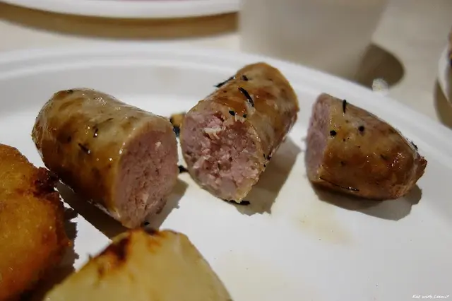 另外點了幾樣小食,香腸不錯但價格稍高,本來想吃炸馬鈴薯但店員聽成烤馬鈴薯,自己拿到帳單又粗心沒確認,味道普普通通,外皮焦的有點嚴重,炸麵團是把義大利麵包起拿去油炸,吃起來其實沒那麼特別,門口的冰櫃也有一些醃漬物和冷菜、甜點可以選擇。