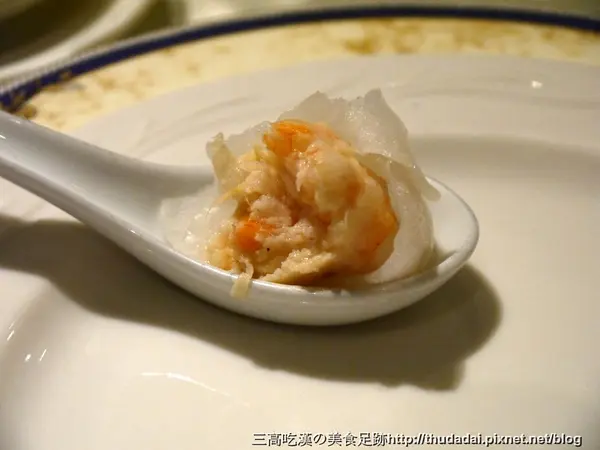 首先上桌的是龍皇鮮蝦餃(NT$150),咬下去感覺皮的黏稠度和彈性十分恰當。