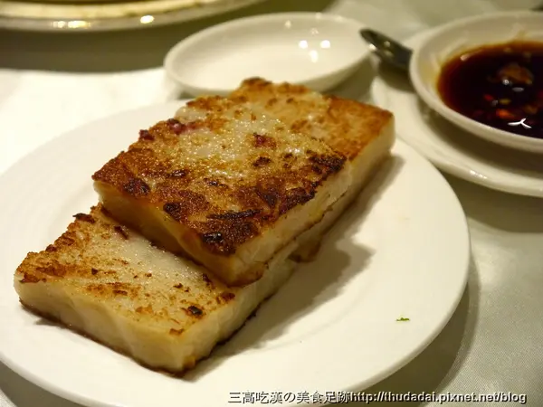 接著上桌的是臘味蘿蔔糕(NT$120),蘿蔔糕表面煎得微微焦香,