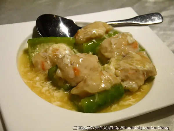 另外一道菜是百花蒸釀絲瓜(NT$580),淋了滑順帶有蛋花的芡汁,