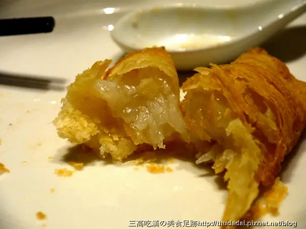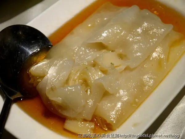 金菇帶子腸粉(NT$150),這個也不賴,包在腸粉中的金針菇和干貝給人的感覺並不薄弱,整體口感都很好,金針菇和腸粉是不同的滑順,穿插著有彈性的干貝~