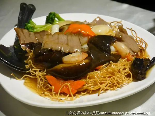 後來還上了一個廣東炒麵(NT$480),兩面黃麵體脆中帶軟,配料全不馬虎,麵吃起來的味道其實就很夠,不過整體來說我覺得這道算還好而已,可點可不點。