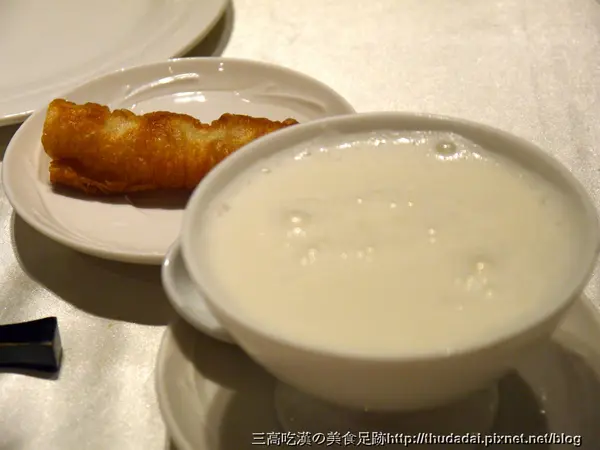 最後是甜點時間,港式杏仁茶(每位NT$120),搭著香酥油條來吃,現磨杏仁算香,喝起來是沒到很濃,覺得還可以~