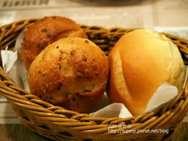 套餐的麵包還不錯。沾醬我忘記是什麼口味了,記得甜甜的,還不賴。