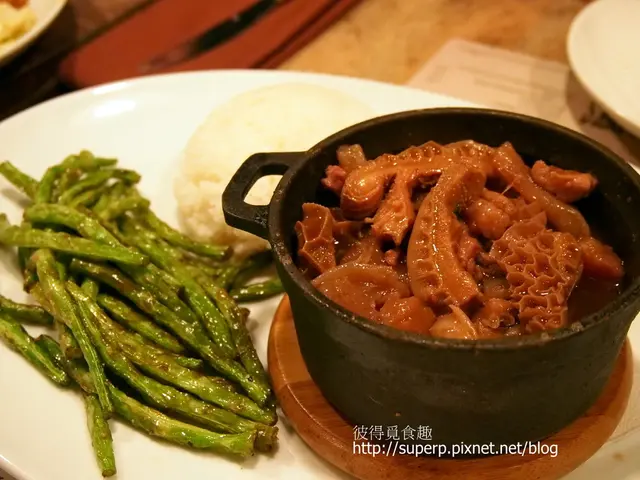 紅酒燉牛雜$360(牛雜的部分以牛肚跟牛筋為主。紅酒醬汁濃郁,而且充滿了膠質,搭配白飯真的是美味無比。配菜的烤四季豆也很不錯。整體來說是大推!)