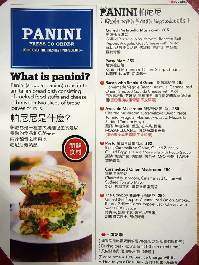 酪梨野菇帕尼尼$285(酪梨跟番茄讓這個帕尼尼吃起來比青醬的更為柔和,有些友人比較偏好這口味。也是接近大推!)