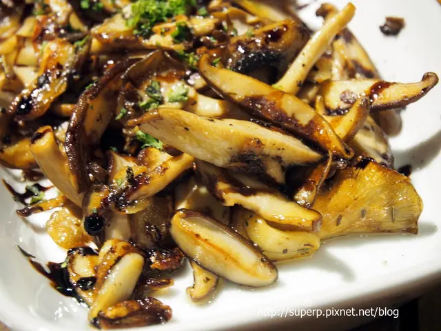 香蒜野菇$210(蒜味撲鼻,但吃起來焦苦味太重,可能火太大讓蒜頭焦掉了。個人就會做香蒜野菇,喜歡加紅酒醋跟辣椒和綜合香料讓味道有著蒜香跟酸和辣以及鹹,但這味道就是單一的焦苦而已。完全不推)