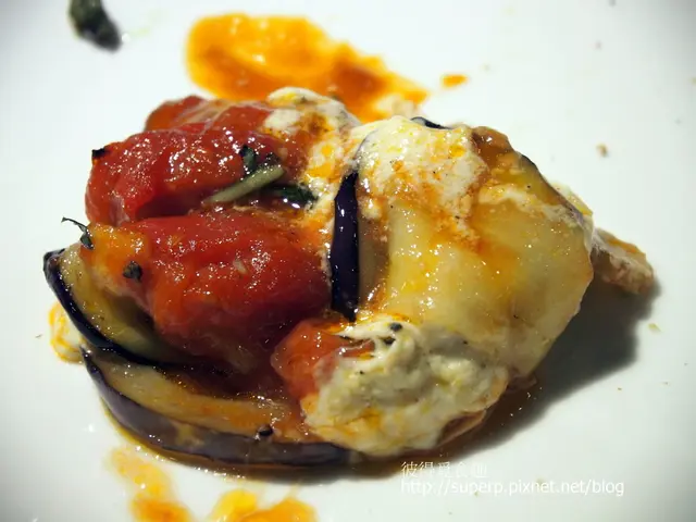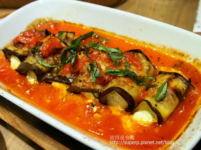 鑲茄子卷$320(這每天限量供應10份。茄子鑲起司下去跟紅醬一起烤。茄子的軟跟裡面ricotta起司的綿密,以及紅醬的鮮美,非常的搭配,大推!)