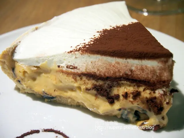 香蕉派$180(裡面的內餡類似香蕉跟卡仕達醬混合版,香蕉味濃,甜而不膩。媽啊這也太好吃了,是我吃過最棒的香蕉!。其中一位友人還額外打包了一塊回家。特推!)