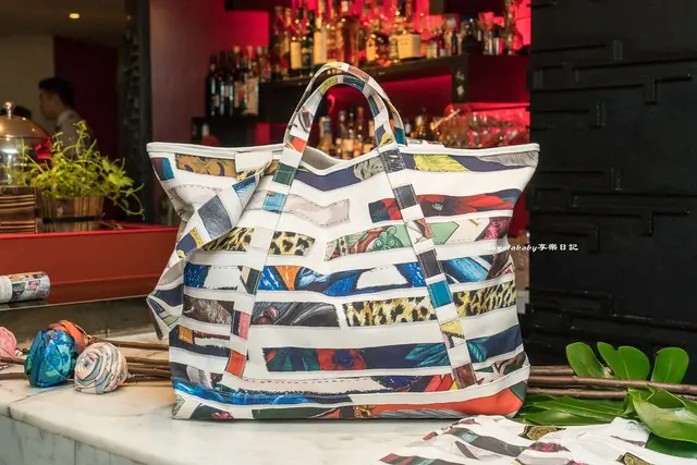 現場展示包包、T-shirt以及品牌聯名的下午茶茶點