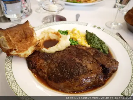 加上side dish 再淋上牛排肉汁 美味的牛肋排就在我眼前完成呢~~