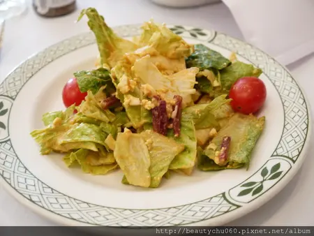沙拉是大量的蘿蔓葉為主 配上小蕃茄、甜菜及雞蛋
