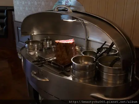 通過金牌受驗合格的專業牛肋排師傅 推著餐車來到桌邊囉!!