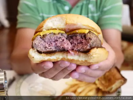瞧瞧這厚的不像話的牛肉漢堡排 配上融化的起士 實在太誘人了吧!!