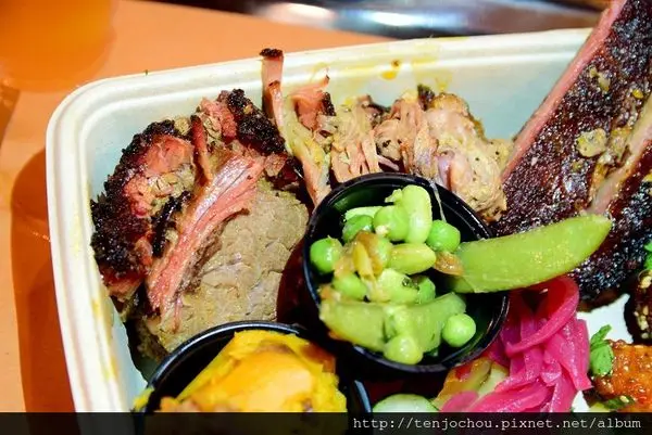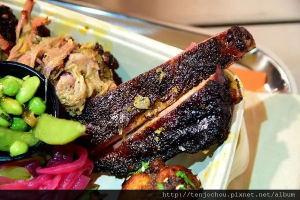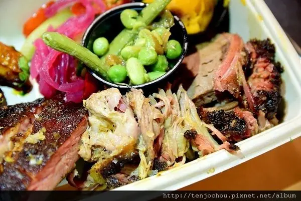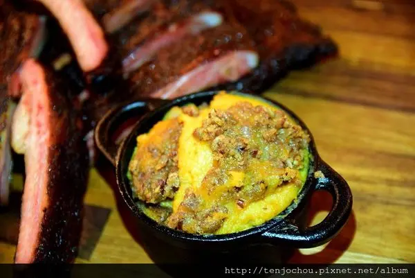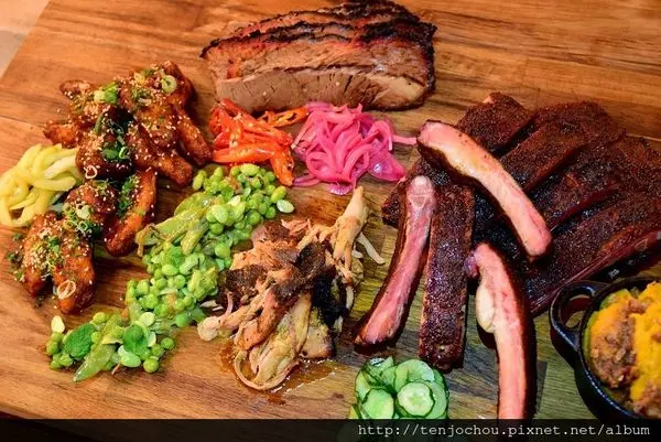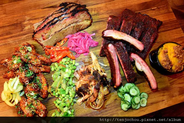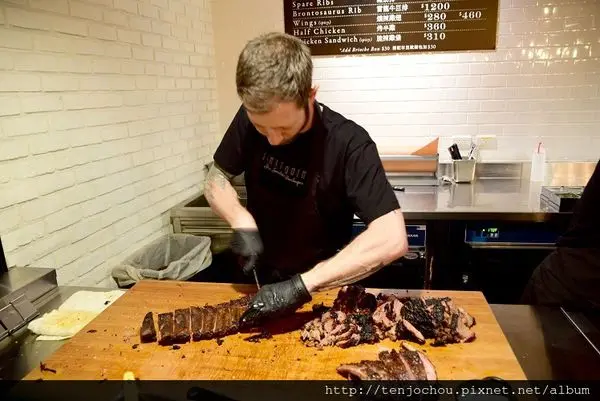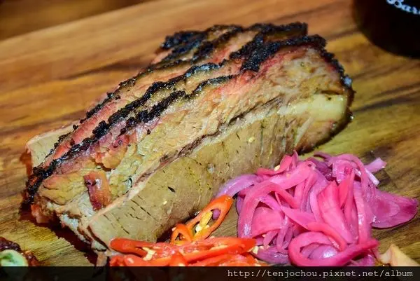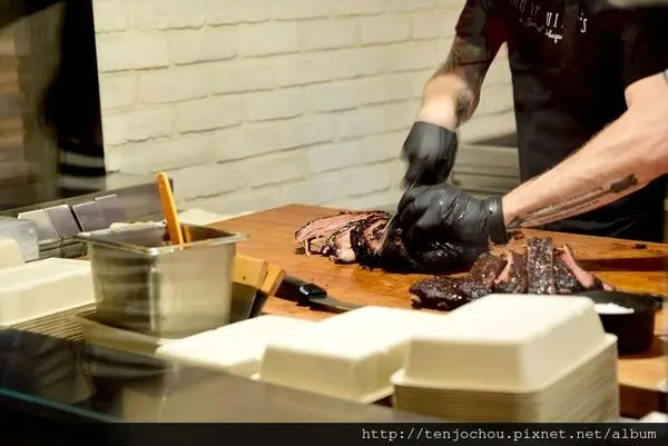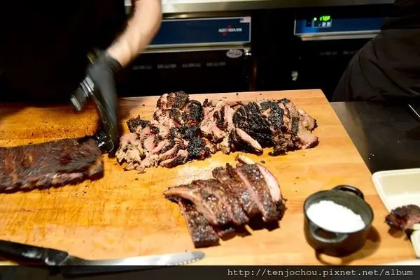 肉品先以香料醃製,再用木頭慢火燻烤24小時,創造出獨特的美式風味