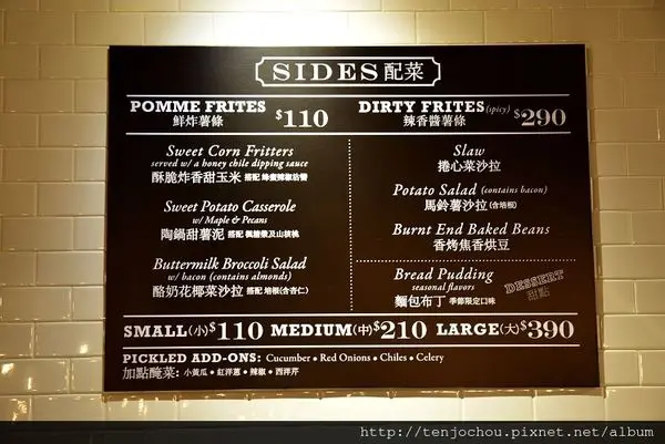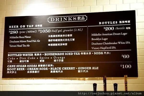 麥笛昆餐廳台灣店菜單如下,分成:肉類、配菜、飲品,算是中高價位