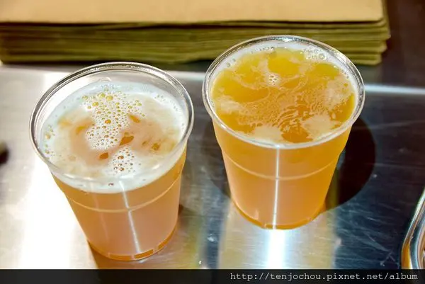前者啤酒花味重帶著成熟苦味,美式風格強烈;後者則是近期很夯的穀雨茶啤酒,特殊香氣非常好喝