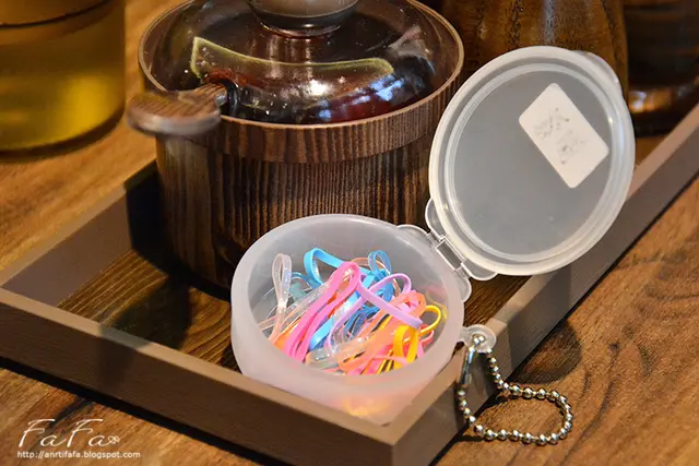 白色盒子內裝髮圈,是店家貼心為長髮客人所準備的。