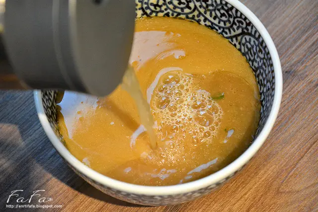 如果吃到後來覺得湯體太濃可以使用一旁的高湯稀釋,倒入時倒數5秒是剛剛好的調整。