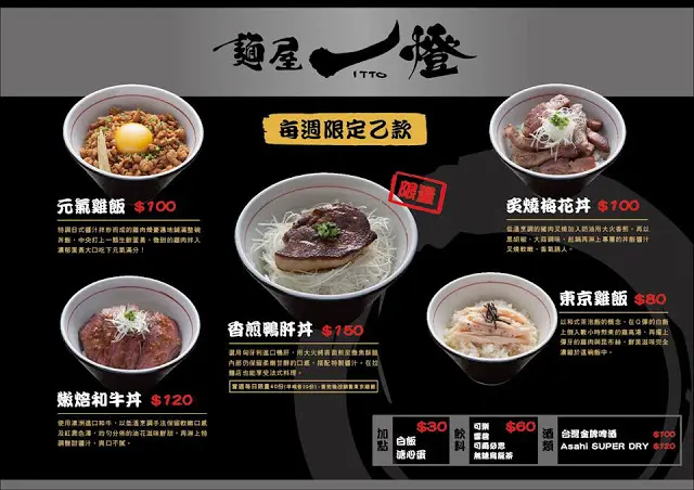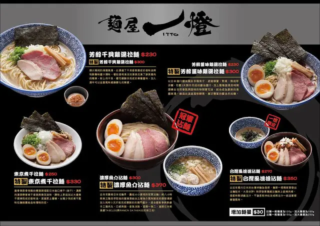 MENU取自台灣麵屋一燈 ITTO Facebook