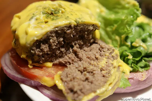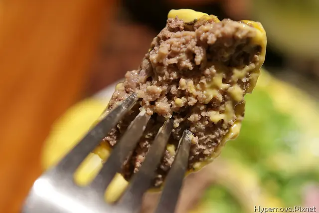 下層有滿滿的起司與厚實的手做牛肉漢堡排