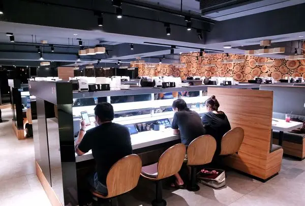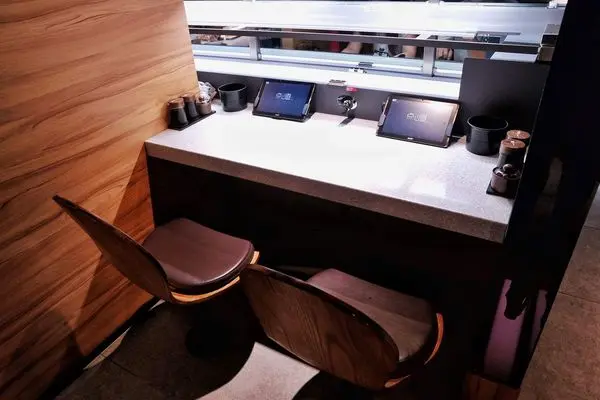 試探性從餐盤上取下餐點,待幾秒後新幹線又咻~~~的回總站去,重複幾次的畫面還是覺得新奇又有趣,
