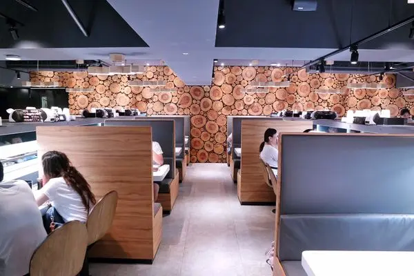 點心道以原木色調及沉穩的咖啡色為主軸,牆壁是以木頭橫切面裝飾,很有文學氣息,
