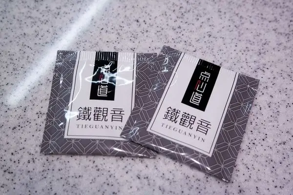 鐵觀音茶包加入熱水沖泡來喝,很適合搭配偏油膩的港點一起來吃。
