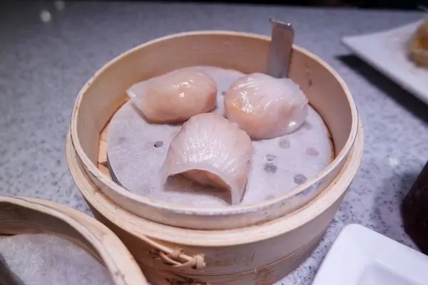 薄可透光的蝦餃透著粉嫩誘人鮮蝦,
