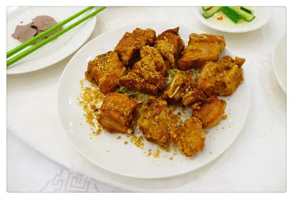 排骨炸的外酥內嫩 又香又好吃 不會肉少骨頭多 排骨上灑了炸過的蒜香 酥酥地完全非常搭