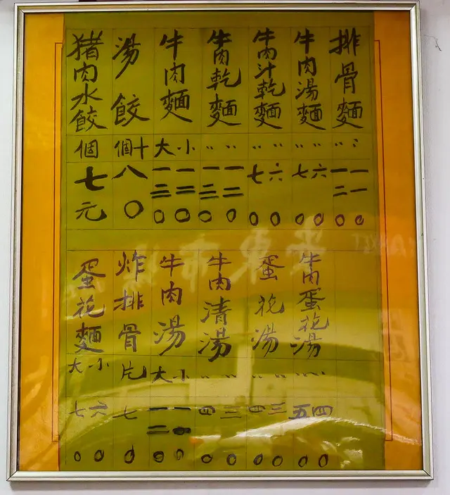 水餃一顆七元,看來與快十年前的價格沒什麼變動,牛肉麵與排骨麵各為 120與 110