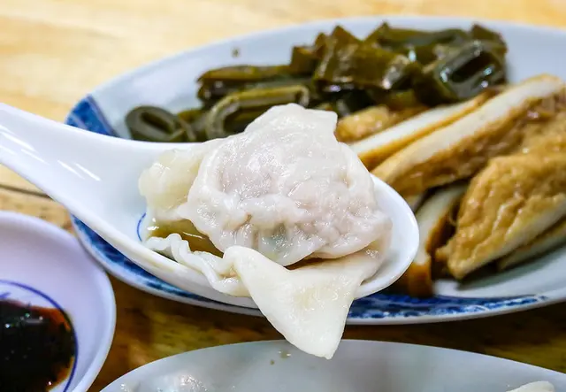 點六顆水餃,切一點滷味然後點個牛肉蛋花湯