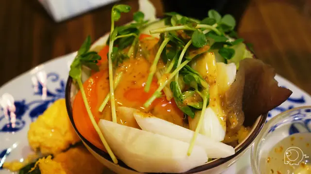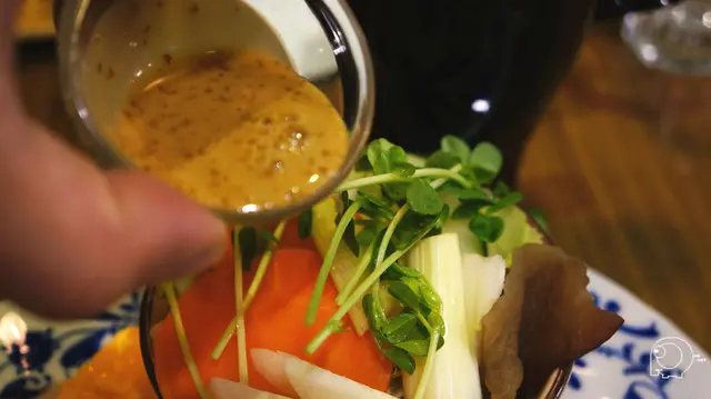 淋上帶著酸味的胡麻醬還滿好吃的呢