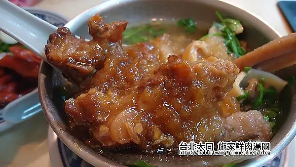 延三夜市之旅在買完脆腸之後走到第四站,施家鮮肉湯圓。因為前面已經吃過炒牛肉跟魚捲,肚子已經有五成飽了,加上我胃不好所以不太能在晚上吃湯圓,所以到了施家鮮肉湯圓並沒有點湯圓吃(沮喪)。但是這家店很特別,除了湯圓以外還有賣很多很多的美食,我看了菜單看到有餛飩、麵食、小菜等小吃之外,發現到有佛跳牆!這種料理平常都只能砸大錢在餐館或是餐廳才吃得到的,在這就可以吃到真的是非常的開心。