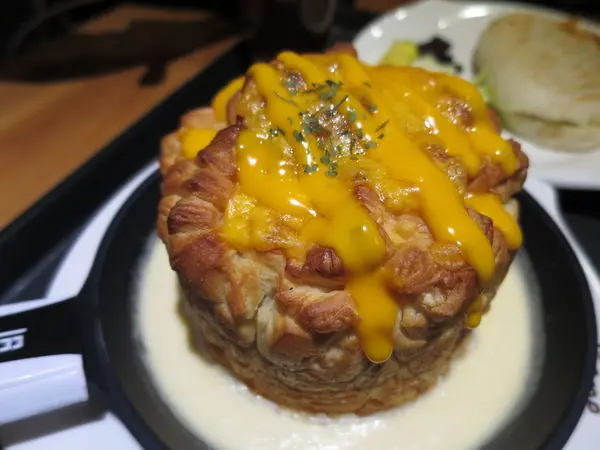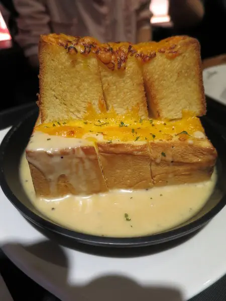 裡面還是軟棉的白吐司 上面淋的是起士 底下則有奶油混合起士的湯汁 但起士味沒有上一款的吐司來的濃厚