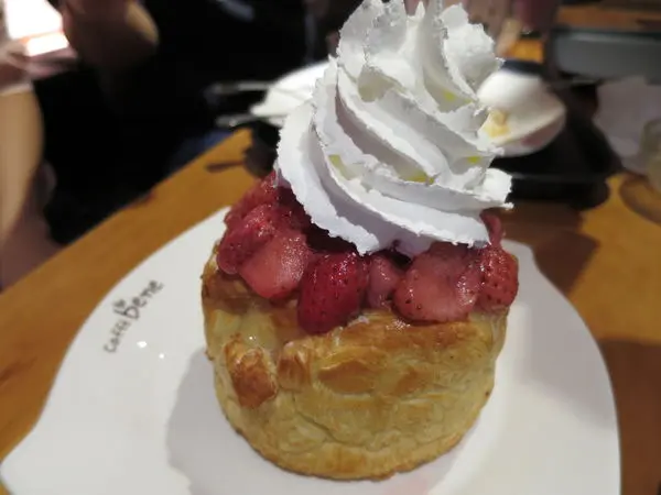 萬不是很喜歡鮮奶油 但Caffe bene好多甜點都會擠一大陀 這焦糖的味道很香 肉桂則是淡淡的 但沒有什麼內餡