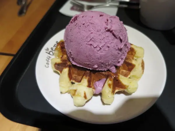 但這個waffle是類似比利時格子鬆餅 不是很大 一上來時友人覺得蠻失望 太小了 CP值不高 所以不太建議點