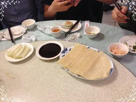 鴨皮好薄脆,鴨肉軟嫩有嚼勁,甜麵醬和蔥可以解油膩,好吃,分量大約每人包2