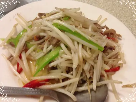 青椒炒肉絲:粉油粉油口味又重,大家直說必須配飯才剛好,只可惜我們沒有點白飯