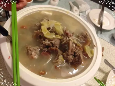 酸菜鴨骨湯$100:用鴨骨熬煮加入酸菜、豆腐,湯頭不酸味道醇厚,喝起來不油很濃郁,但是酸菜是夭壽的鹹,大家搶著喝清湯,最棒的是還可以加湯,打包帶回家喝,多熬一下味道更棒!