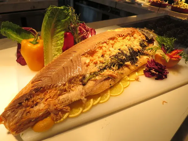 [地中海爐烤鮭魚] 哇~~好像第一次看到這麼大尾的鮭魚直接烤好上菜耶