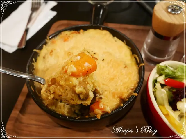 其實這天我也沒吃午餐,吃了一口草莓鬆餅後,還真的頗後悔為什麼沒點焗飯!!