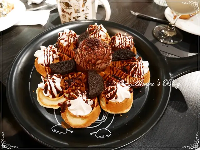 本日最甜的一款鬆餅!!從它綴著巧克力冰淇淋球、淋上巧克力醬、還有巧克力餅乾!!