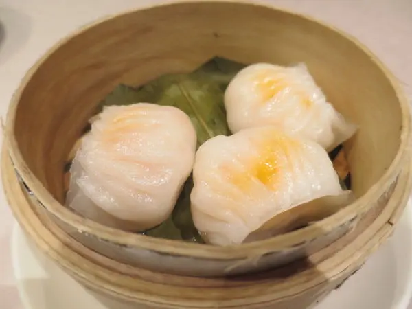[蟹黃明蝦餃 170元] 好晶瑩剔透 漂亮的蝦餃 蟹黃的色澤也透出來
