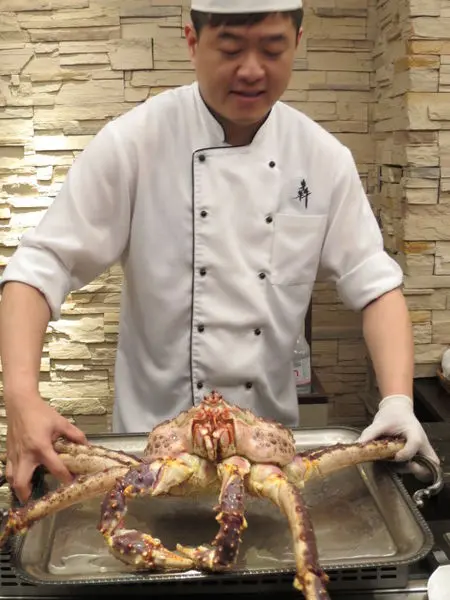 哇 師傅把我們的鱈場蟹先送上桌給我們看看喔 有嚇到萬了..