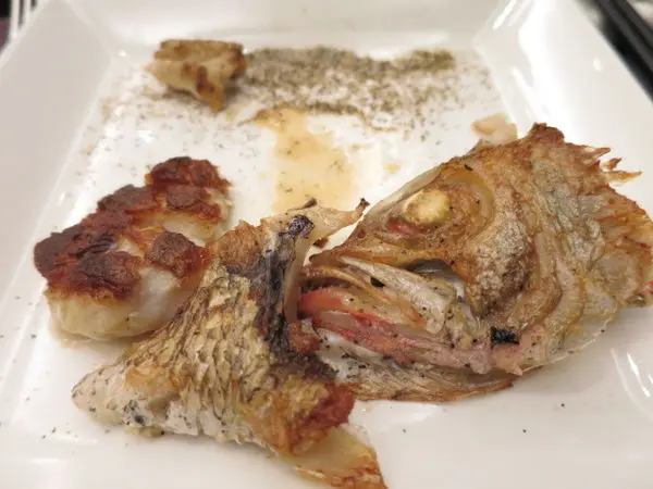 [現撈活魚 紅喉(依時價)] 主廚留了一個魚頭給我 肉質非常細 加一點點胡椒塩就好好吃