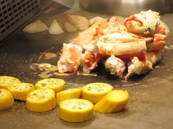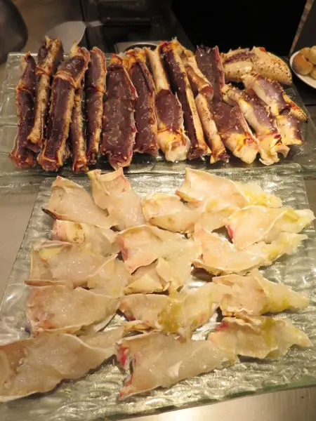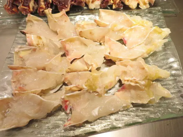 我們的活鱈場蟹 此時也已化身為食材了 分成蟹腳 大腿肉 會有不同的烹煮方式