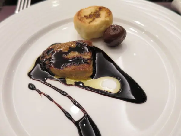 [嫩煎Rougie鴨肝] 鐵板燒的煎鴨肝一向是萬的愛 搭配上栗子 鴨肝本身不小 配上醬汁調味剛剛好